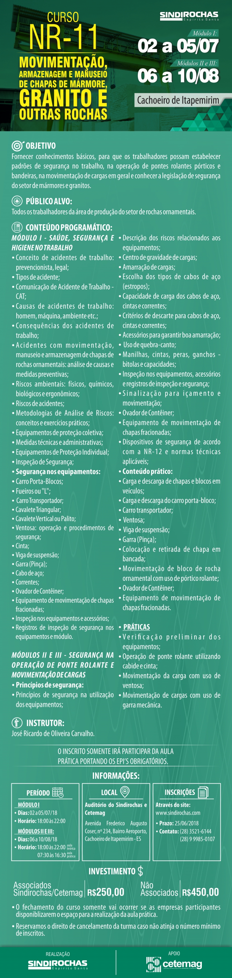 Curso NR-11: Armazenagem, Manuseio e Movimentação de Chapas de Mármore, Granito e Outras Rochas
