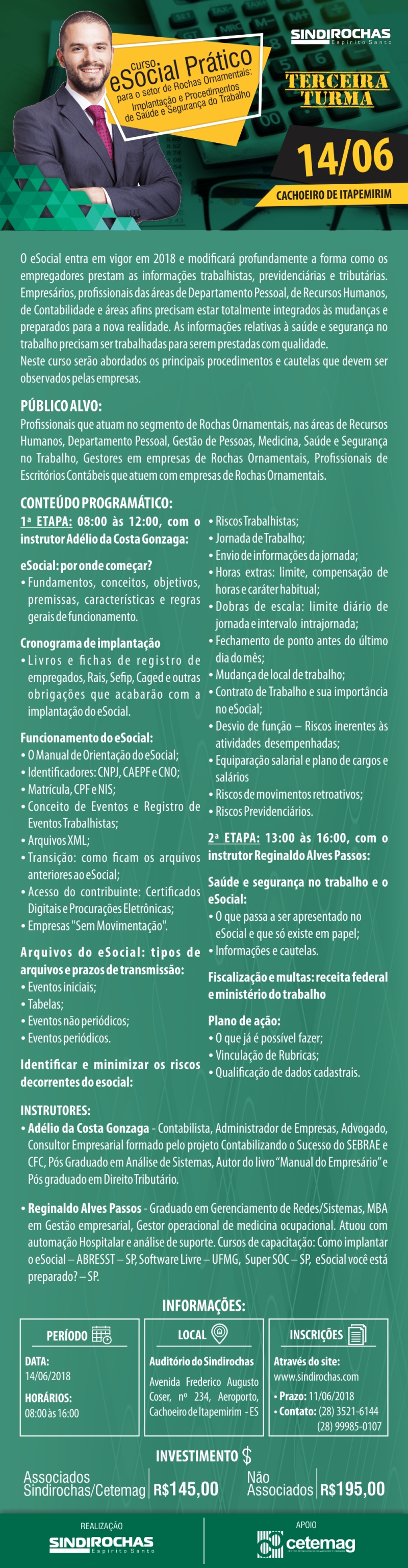 3ª Turma - Curso eSocial Prático do Setor de Rochas Ornamentais: Implantação e Procedimentos de Saúde e Segurança do Trabalho