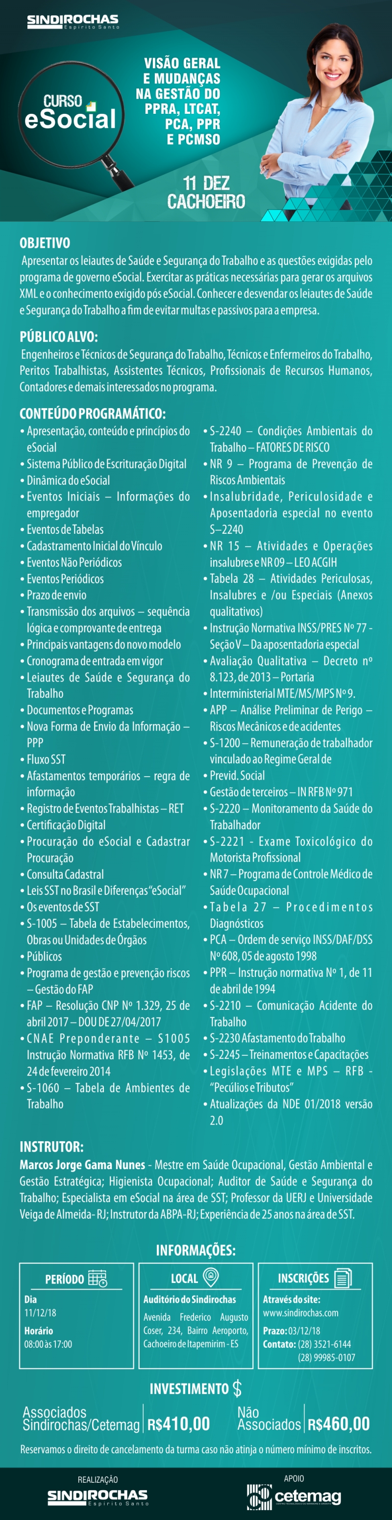 Curso eSocial: Visão Geral e Mudanças na Gestão do PPRA, LTCAT, PCA, PPR E PCMSO