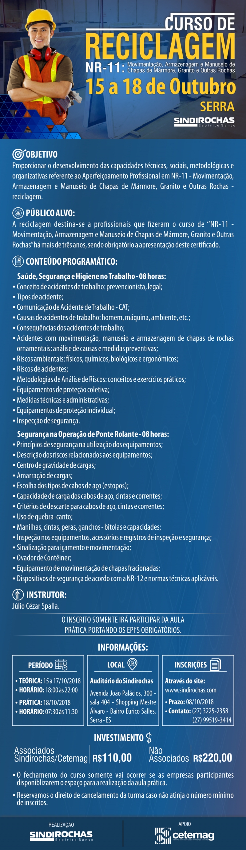 Curso de Reciclagem NR-11: Movimentação, Armazenagem e Manuseio de Chapas de Mármore, Granito e Outras Rochas