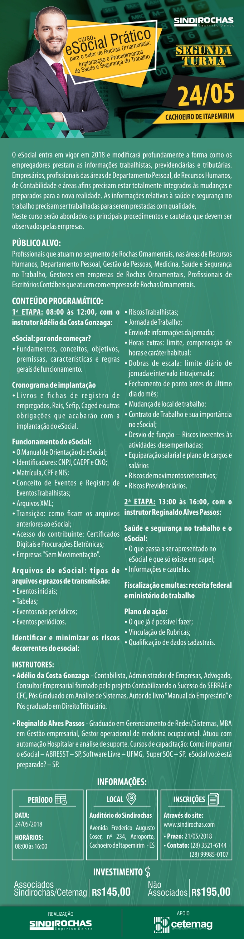 2ª Turma - Curso eSocial Prático do Setor de Rochas Ornamentais: Implantação e Procedimentos de Saúde e Segurança do Trabalho