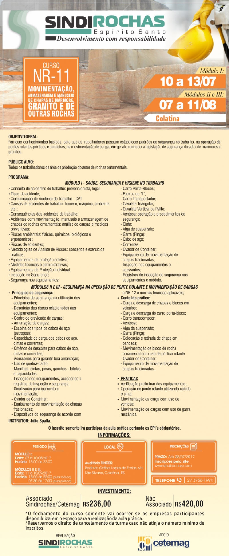 Curso NR-11: Movimentação, Armazenagem e Manuseio de Chapas de Mármore, Granito e de Outras Rochas