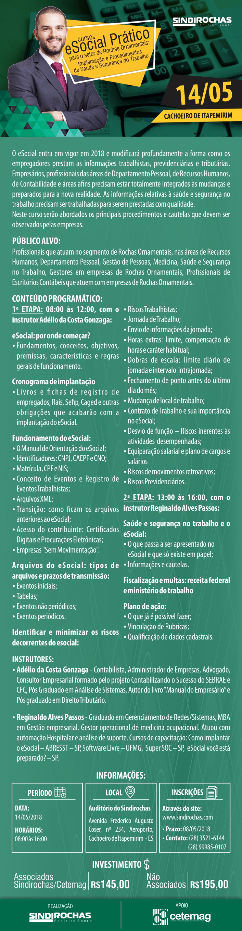 Curso eSocial Prático do setor de Rochas Ornamentais: Implantação e Procedimentos de Saúde e Segurança do Trabalho