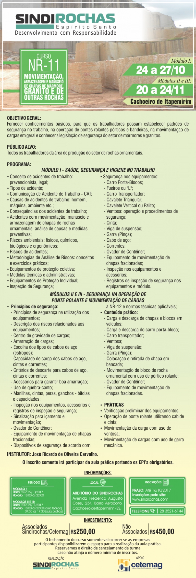 Curso NR-11: Movimentação, Armazenagem e Manuseio de Chapas de Mármore, Granito e de Outras Rochas