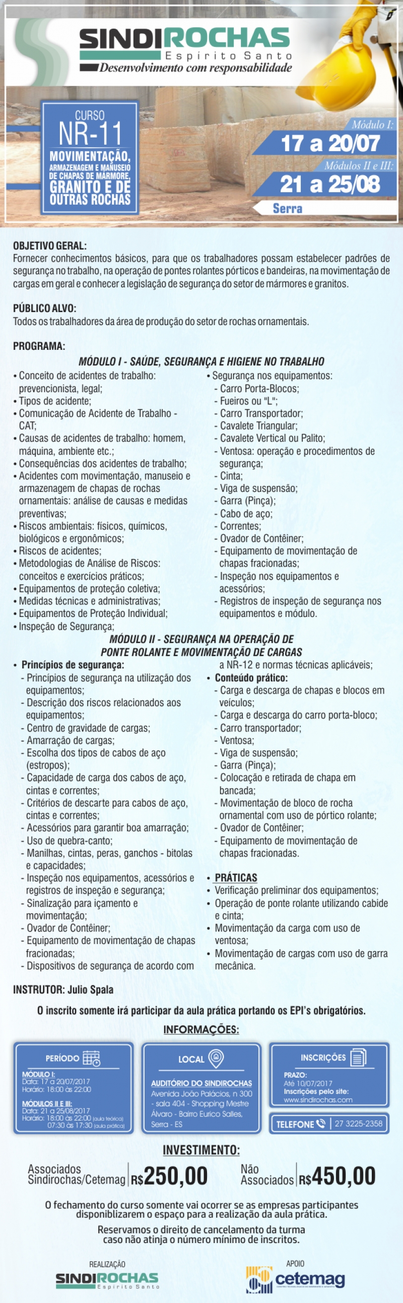 Curso NR-11: Movimentação, Armazenagem e Manuseio de Chapas de Mármore, Granito e de Outras Rochas